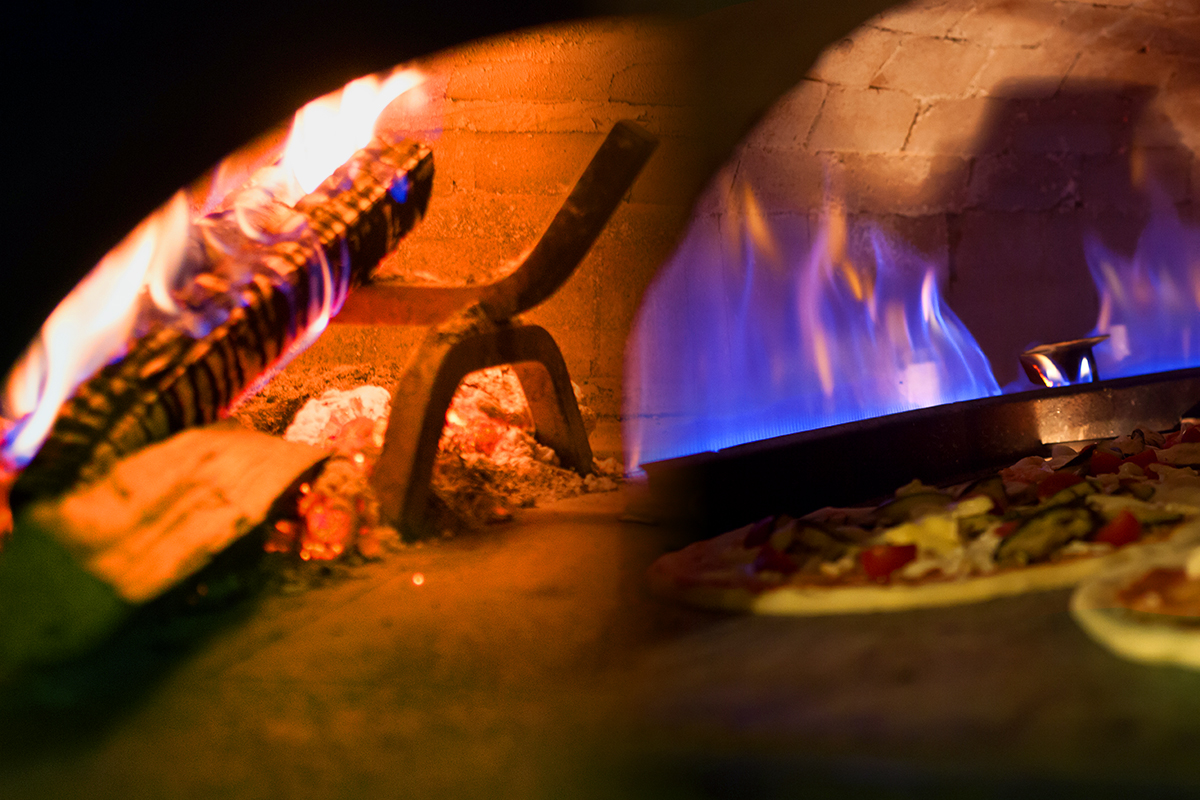 La Linea MX integra un bruciatore a gas di alta efficienza e una vera cella di combustione a legna nella stessa camera di cottura. Puoi usarli separatamente o in combinazione — il nostro team tecnico ti supporta nella scelta del setup ideale.